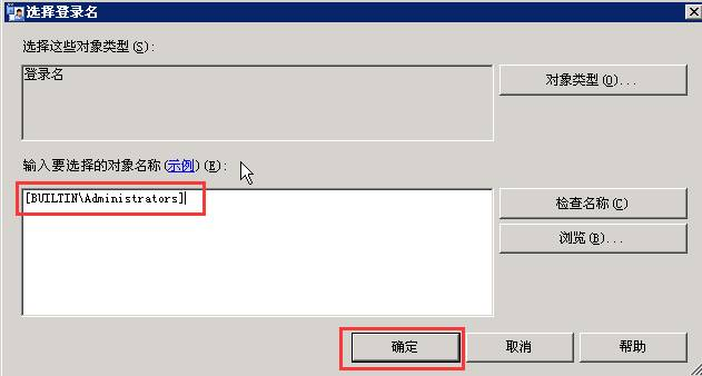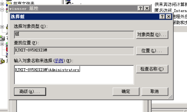 弹出查找对象对话框,在里面选择一个用户,选择administrators。