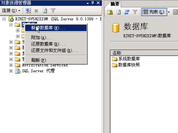 在SQL Server Management Studio中,右击数据库,选择新建数据库