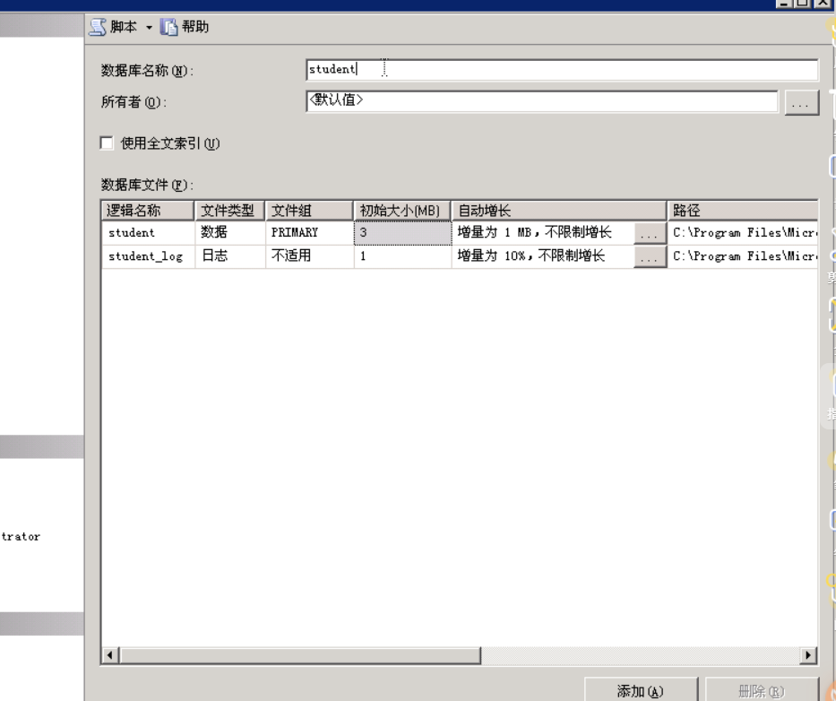 在数据库名称内输入student新建一个student数据库,然后点击确定 。
