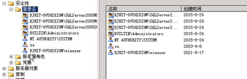 在对象资源管理器中,展开安全性-登录名,可以看到winuser已存在。