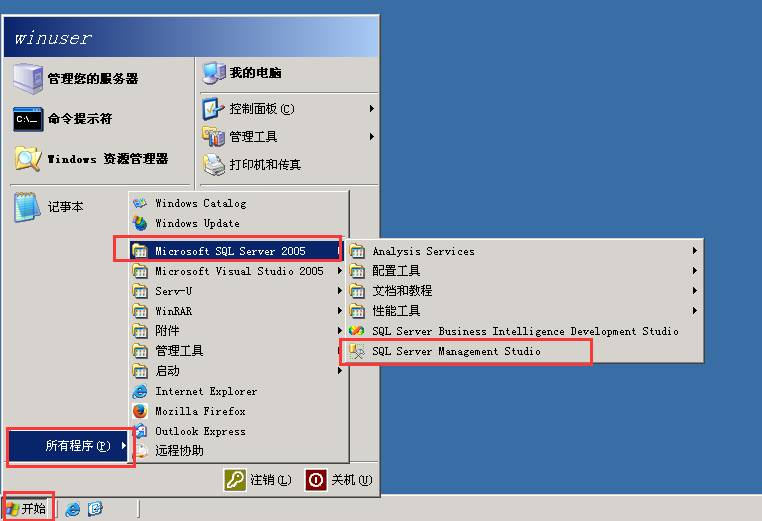 登录后,点击左下角的开始-所有程序-Microsoft SQL Server 2005-SQL Server Management Studio 进入SQL Server Management Studio。