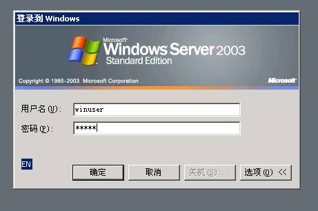然后会自动到登陆页面,输入之前新建的winuser和密码,点击确定登录。