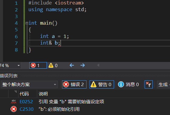 3. 引用一旦引用一个实体,不能再引用其他实体