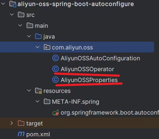 我们根据这个原理新建目录结构即可 写入com.aliyun.oss.AliyunOSSAutoConfiguration即可