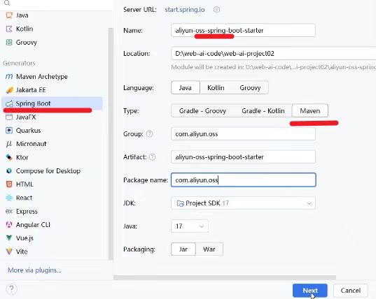 第一步 创建第一部分 Springboot项目 aliyun-oss-spring-boot-starter 无需添加其他起步依赖
