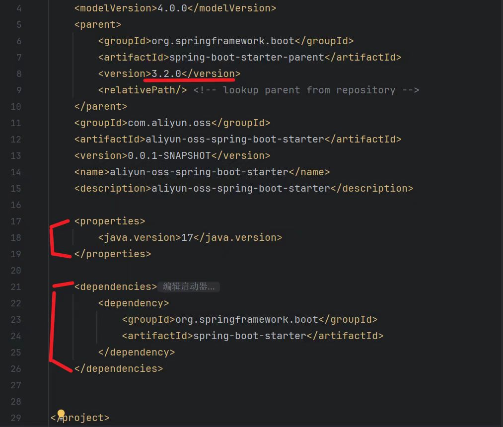 保留src 用于写自动配置文件 、保留pom文件 (pom内容也可仅保留上面图片部分)
