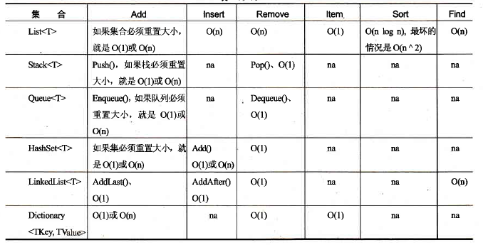 有些功能类似的集合性能却相差甚远(na表示此操作不能进行)