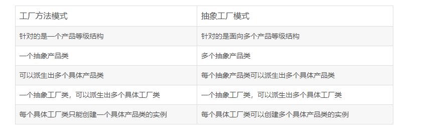 个人觉得这个区别在于产品,如果产品单一,最合适用工厂模式,但是如果有多个业务品种、业务分类时,通过抽象工厂模式产生需要的对象是一种非常好的解决方式。再通俗深化理解下:工厂模式针对的是一个产品等级结构 ,抽象工厂模式针对的是面向多个产品等级结构的。