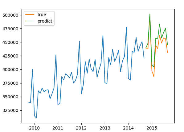 print("ARIMA({0},{1},{2}) performance: {3} ".format(p, d, q, corr))