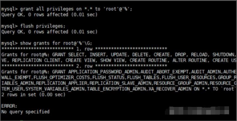 grant all privileges on *.* to 'root'@'%';