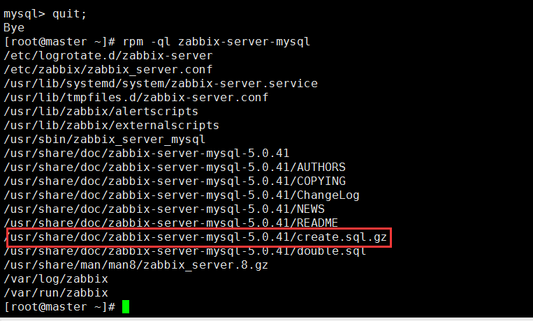 rpm -ql zabbix-server-mysql 查看zabbix的数据文件