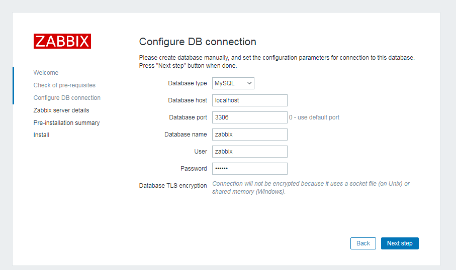 alter user 'zabbix'@'%' identified with mysql_native_password by 'zabbix';