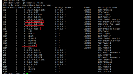查看是否有以下端口 10051、9000、80、3306