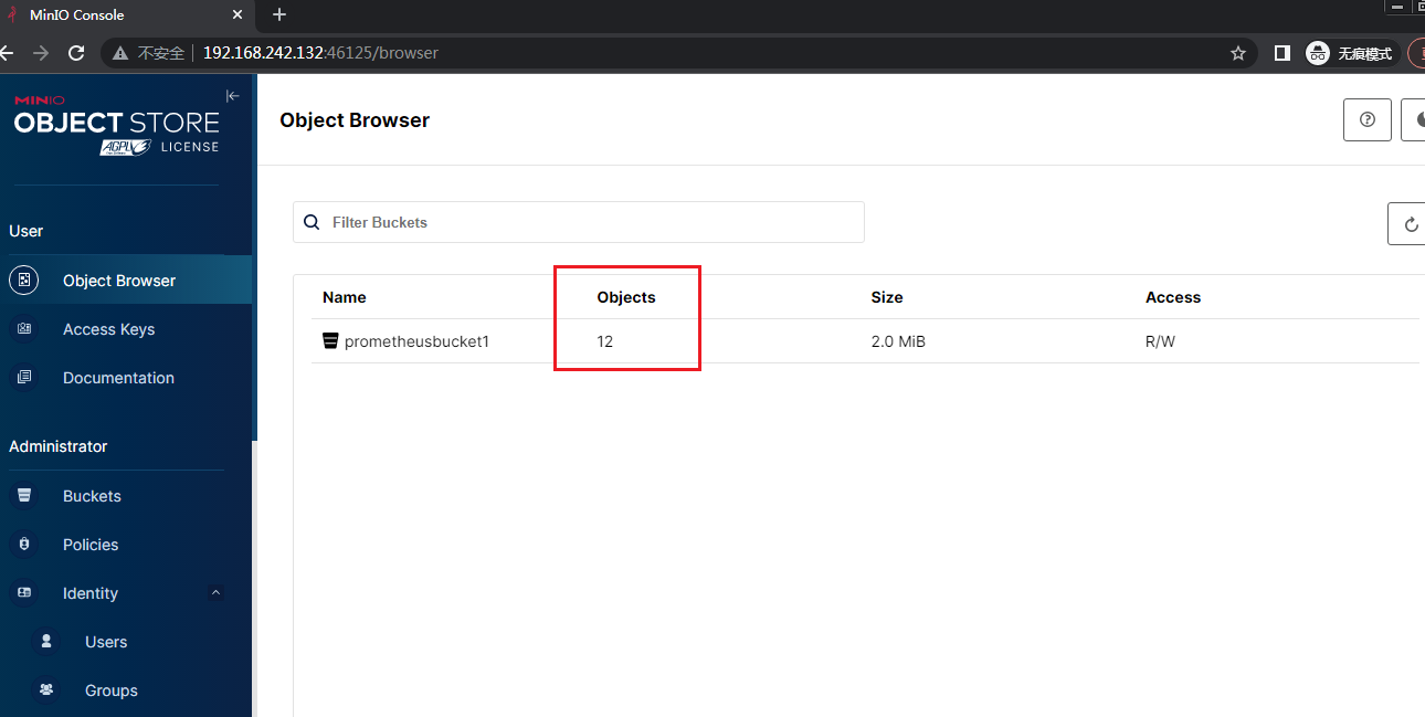 配置好后再次访问minio控制台可以查看到存储桶有多了些文件