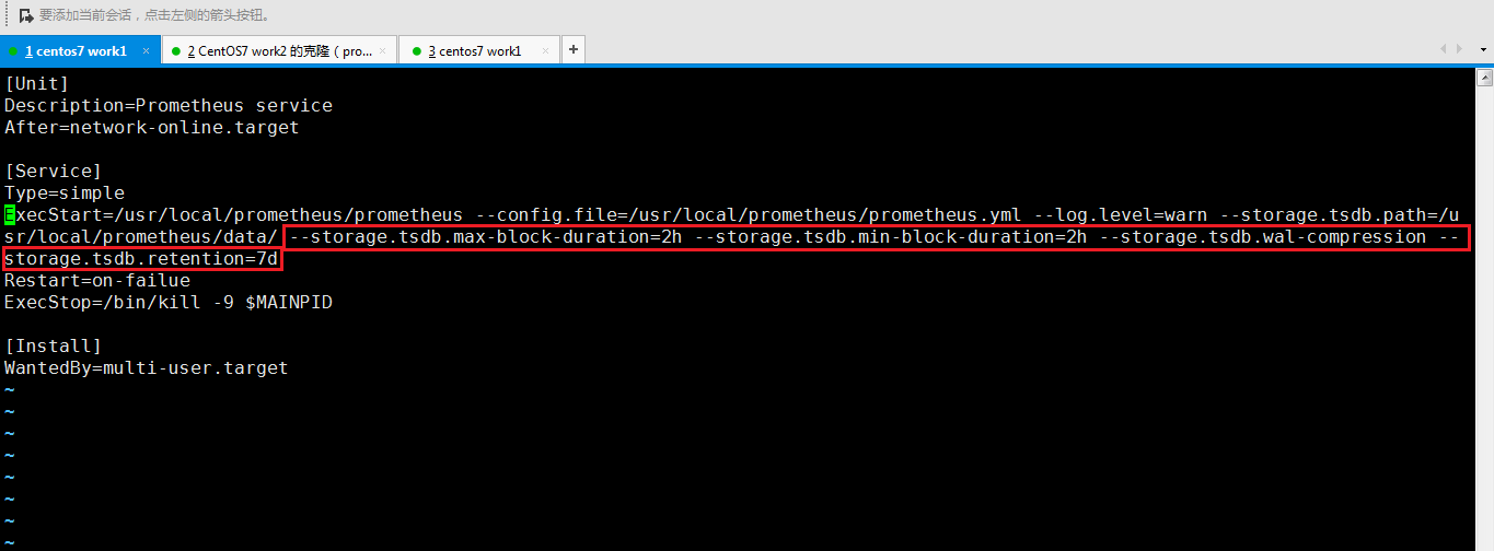 在这个例子中,它被设置为7天,这意味着Prometheus会保留最近7天的数据,而更旧的数据则会被自动删除以释放磁盘空间