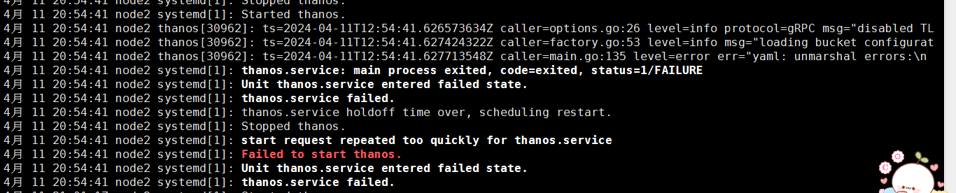 如果启动失败则可以查看thanos的日志