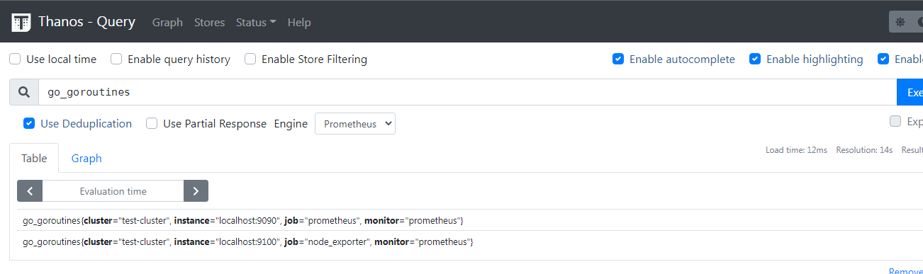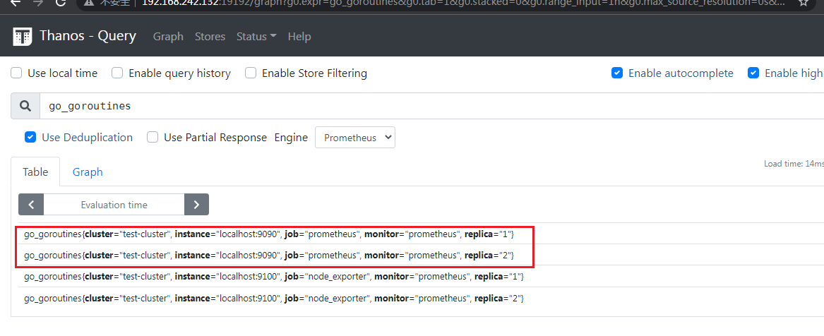 ./thanos query --http-address 0.0.0.0:19192 --store 0.0.0.0:19090 --store 192.168.242.135:19090 --query.replica-label replica