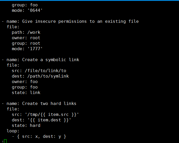 ansible服务将常用的文件管理功能都合并到了file模块中。