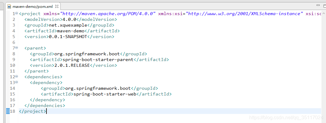 3、接下来我们打开pom.xml文件,填写相关的依赖,我们加入如下所示的依赖配置,如图: