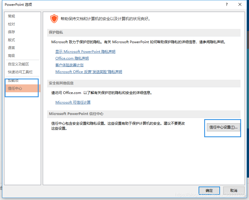 2 然后在打开的界面中选择“信任中心”,然后点击“信任中心设置”,如图: