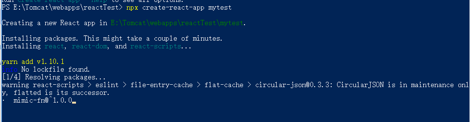 1 进入项目文件夹,在此处打开命令行工具,输入“npx create-reacr-app my test”生成一个名为mytest的项目文件,如图: