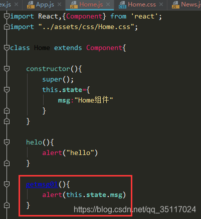 改变this.state中msg的值的时候,我们所使用的是this.setState()方法,如图: