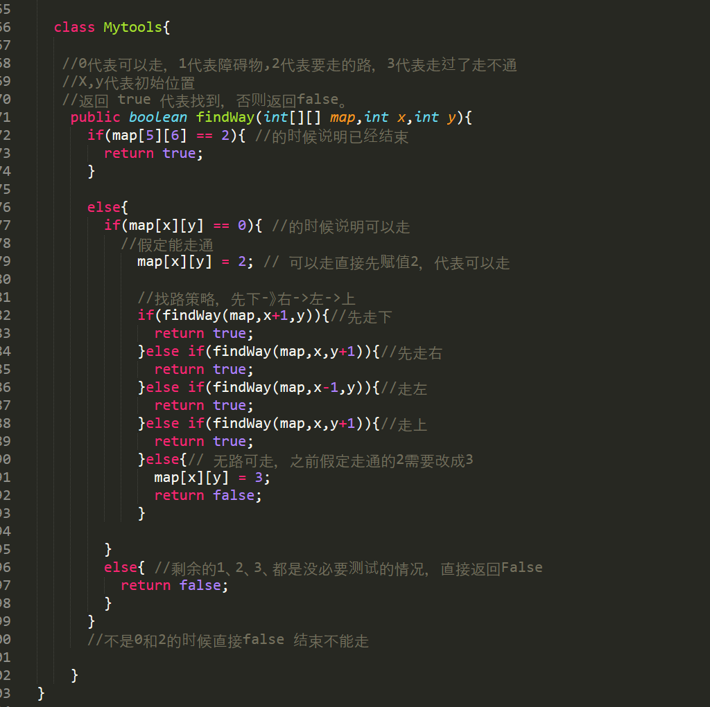 map[x][y] = 2; // 可以走直接先赋值2,代表可以走