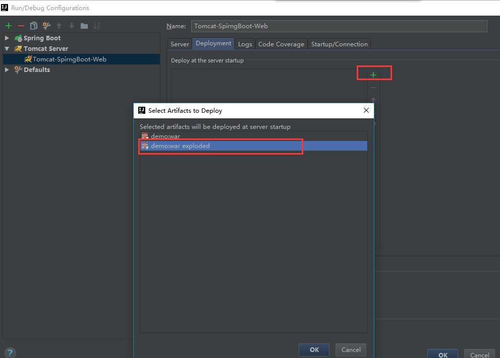 然后选择deployment,点击加号,选择要发步项目的exploded