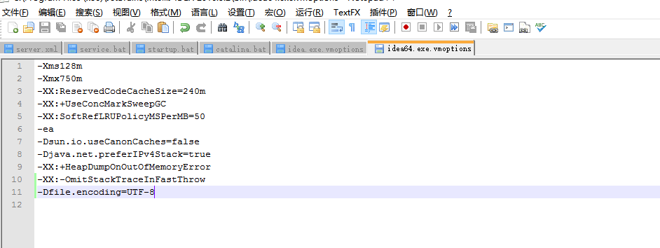在该文件中最后面加上:-Dfile.encoding=UTF-8