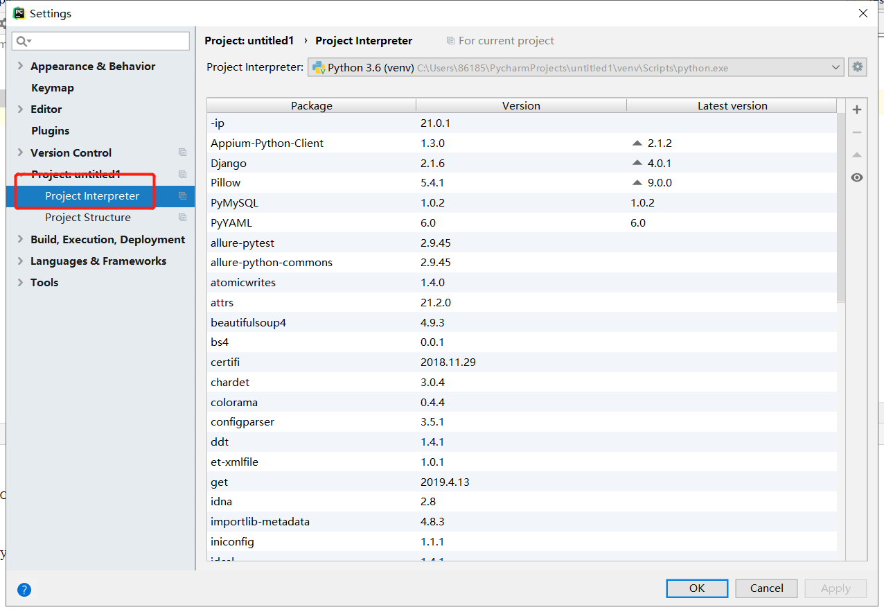 File---Settings中 Project interpreter中选择对应的pyhon版本进行切换