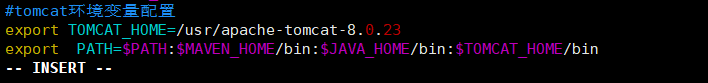 export TOMCAT_HOME=/usr/apache-tomcat-8.0.23 export PATH=$PATH:$MAVEN_HOME/bin:$JAVA_HOME/bin:$TOMCAT_HOME/bin