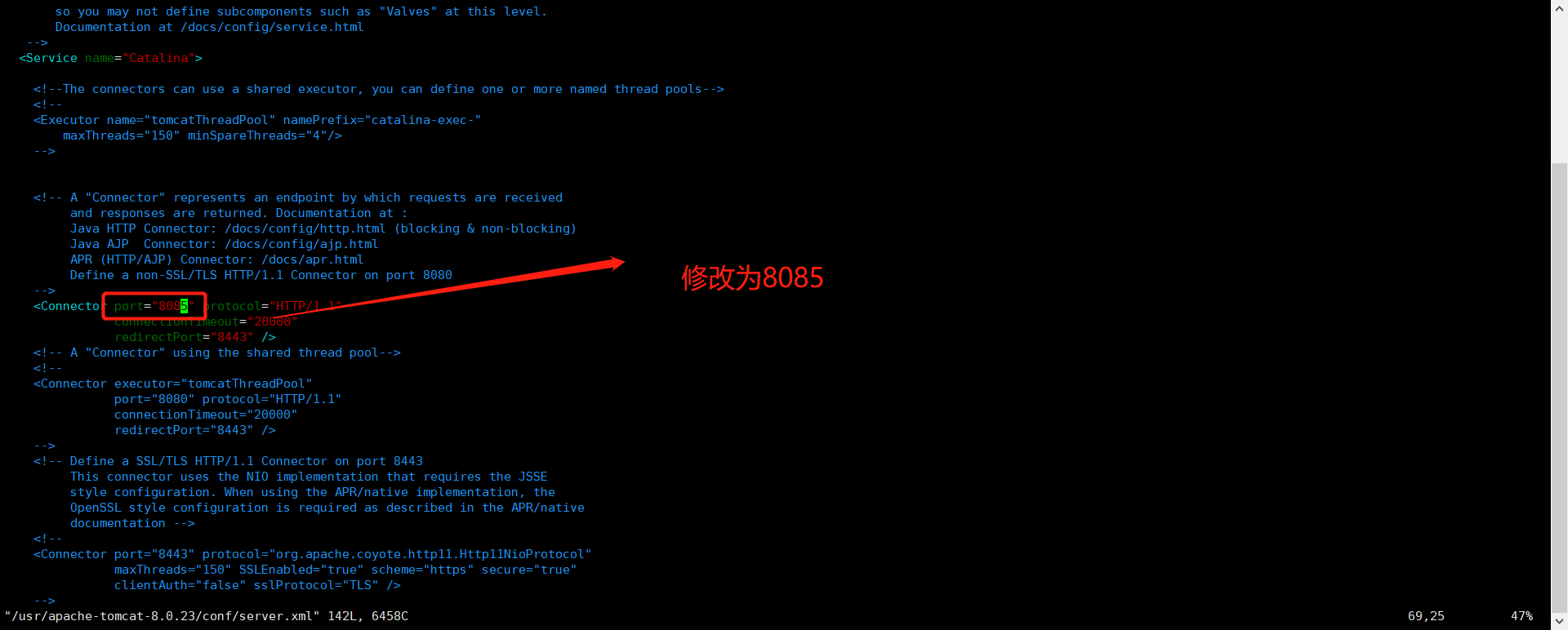 vim /usr/apache-tomcat-8.0.23/conf/server.xml