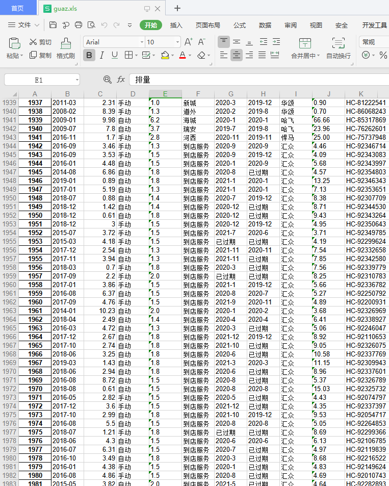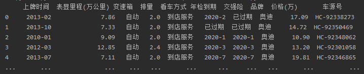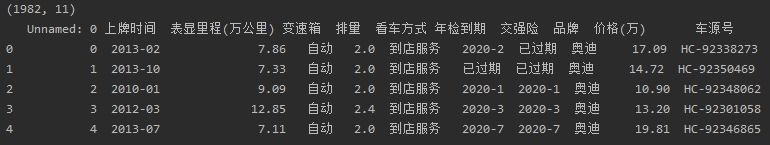 # 读取excel中的内容,并保存到df中 df = pd.read_excel('guaz.xls') df.name='瓜子二手车'