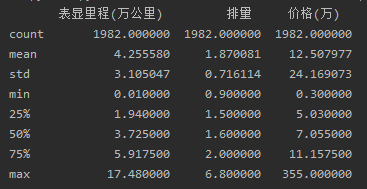 # 查看每栏的统计数据 print(df.describe())