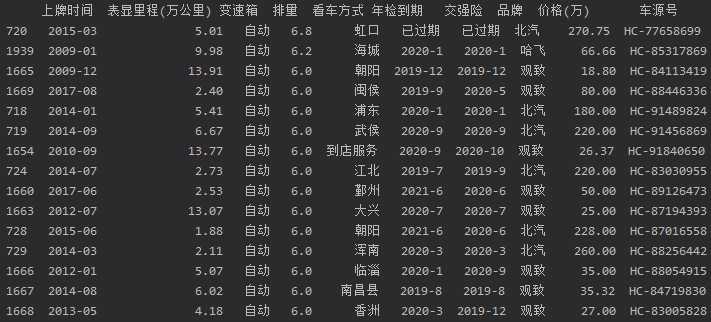 # 查看价格前15的汽车信息 print(df.sort_values('价格(万)',ascending=False).head(15))