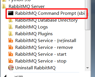 选择RabbitMQ Command Prompt 命令行并打开,输入