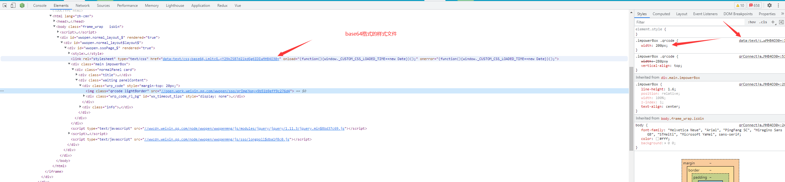 href字段为转码成base64格式的css文件 ,企业微信会把这个样式添加到iframe中