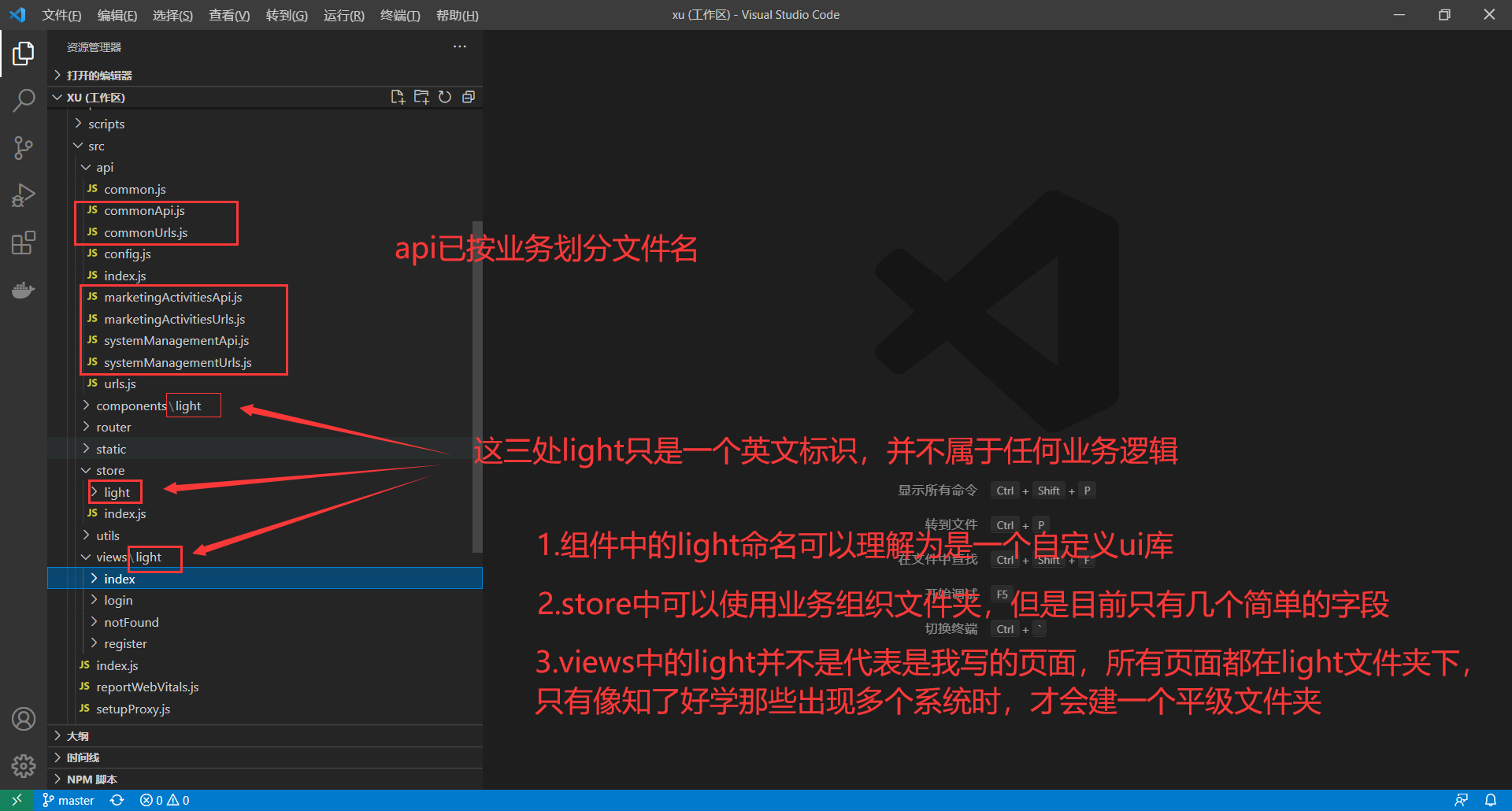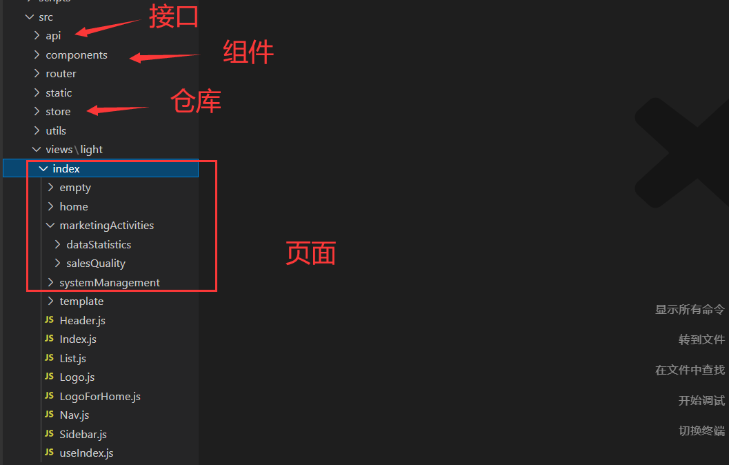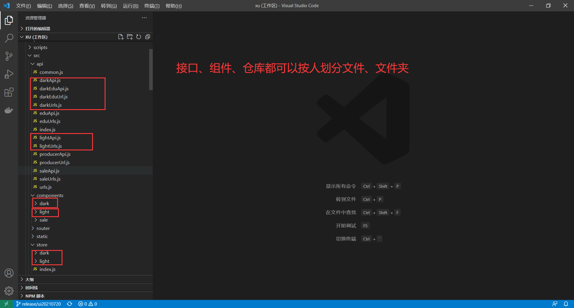 api、组件、store、样式、工具函数等,正在尝试用人划分文件、文件夹。