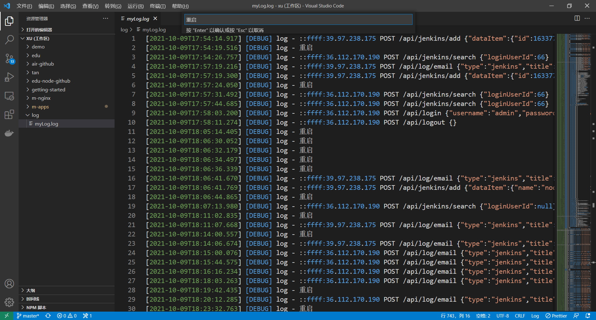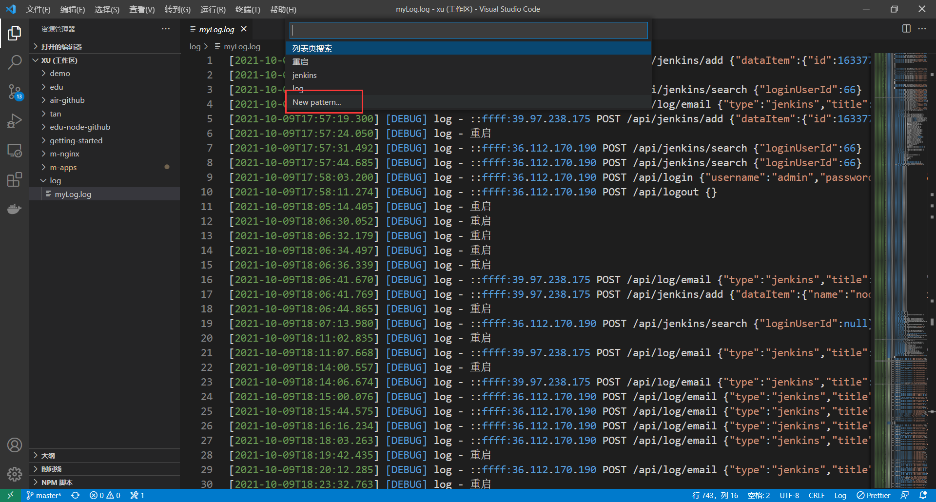 日志过滤(vscode+Filter Line)