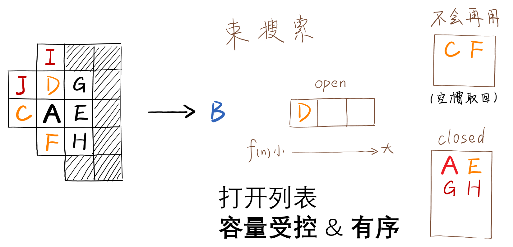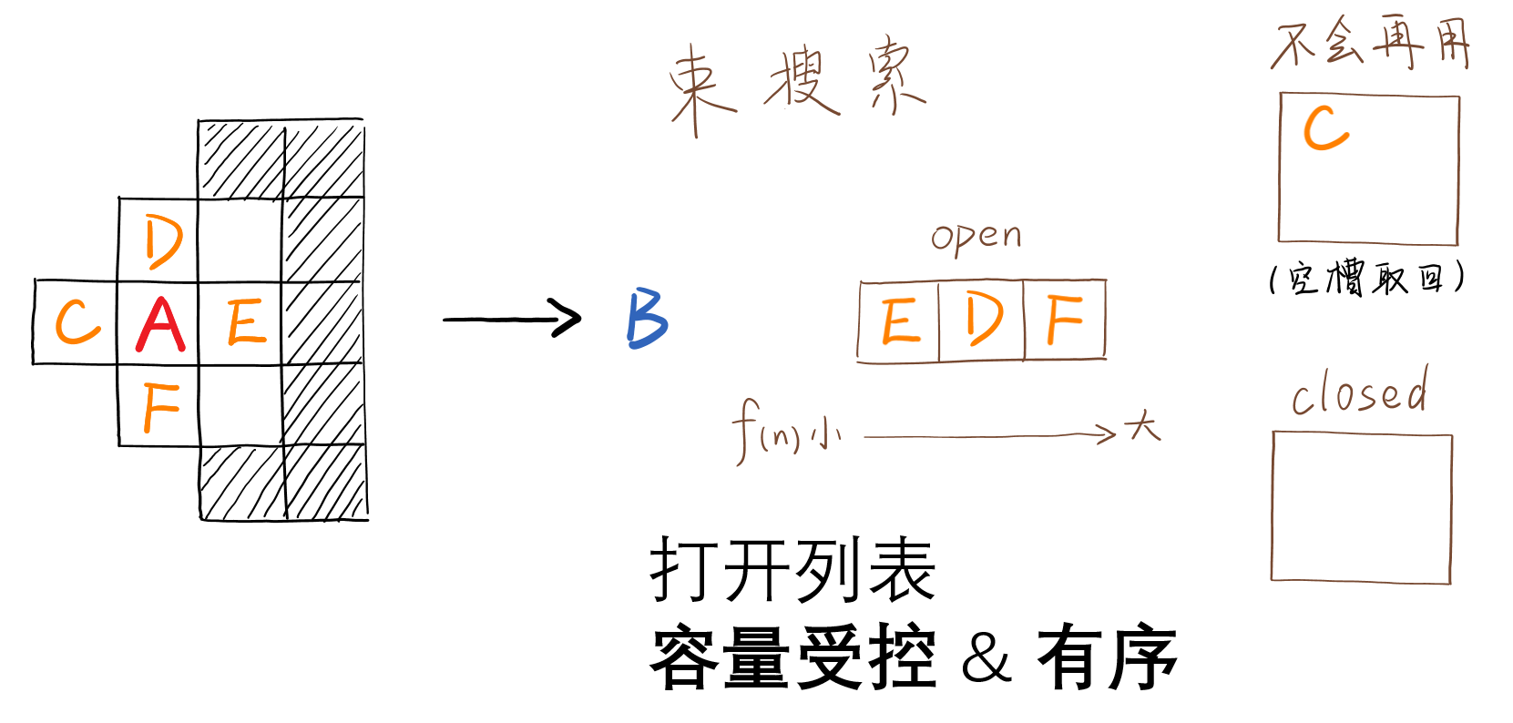 束搜索的好处,就在于,他可以通过剪枝减少搜索的节点,减少时间和空间的消耗