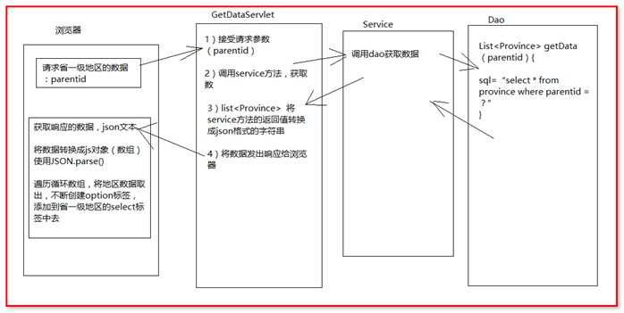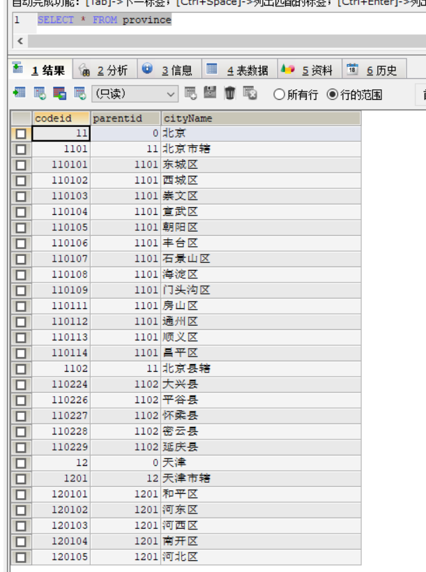 注意点:省市县关系关联(上级行政区id为下级行政区的parenetId)