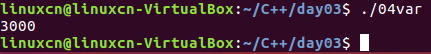 /* 变量练习 */ #include <stdio.h> int main() { int shu_zi; shu_zi = 3000; //3000 = shu_zi; 错误,3000不能当成变量使用 shu_zi = shu_zi; printf("%d\n", shu_zi); return 0; }