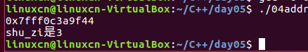 /* 地址操作符 */ #include <stdio.h> int main() { int shu_zi = 0; printf("%p\n", &shu_zi); *(&shu_zi) = 3; printf("shu_zi是%d\n", shu_zi); return 0; }