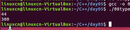 /* 强制类型转换练习 */ #include <stdio.h> int main() { int shu_zi = 300; printf("%d\n", (unsigned char)shu_zi); printf("%d\n", shu_zi); return 0; }