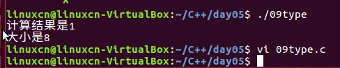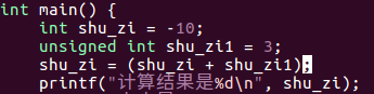 /* 隐式类型转换练习 */ #include <stdio.h> int main() { int shu_zi = -10; unsigned int shu_zi1 = 3; shu_zi = (shu_zi + shu_zi1) > 0 ? 1 : -1; printf("计算结果是%d\n", shu_zi); printf("大小是%d\n", sizeof(3 < 5 ? 1 : 0.9)); return 0; }