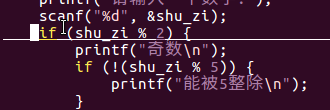 if (!(shu_zi % 5))能被5整除,! 0 = 1,则继续执行;