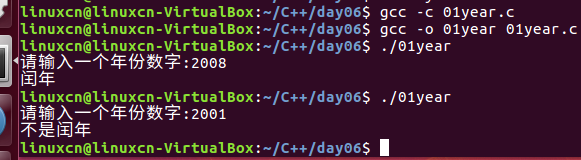 /* 闰年练习 */ #include <stdio.h> int main() { int nian = 0; printf("请输入一个年份数字:"); scanf("%d", &nian); if (!(nian % 400) || (!(nian % 4) && (nian % 100))) { printf("闰年\n"); } else { printf("不是闰年\n"); } return 0; }