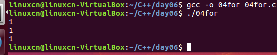 /* for练习 */ #include <stdio.h> int main() { int xun_huan = 0; for (xun_huan = 0;xun_huan < 3;xun_huan++) { printf("1\n"); } return 0; }