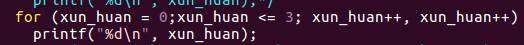 1 /* 2 for练习 3 */ 4 #include <stdio.h> 5 int main() { 6 int xun_huan = 0; 7 /*for (xun_huan = 0; xun_huan <= 3; xun_huan++) 8 printf("%d\n", xun_huan);*/ 9 /*for (xun_huan = 0; xun_huan <= 3; xun_huan++, xun_huan++) 10 printf("%d\n", xun_huan);*/ 11 for (int xun_huan1 = 0; xun_huan1 <= 3; xun_huan1++) { 12 printf("%d\n", xun_huan1); 13 } 14 return 0; 15 }