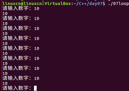 1 /* 2 循环练习 3 */ 4 #include <stdio.h> 5 int main() { 6 int shu_zi = 0; 7 do { 8 printf("请输入数字:"); 9 scanf("%d", &shu_zi); 10 printf("%d\n", shu_zi); 11 } while (0 != shu_zi); 12 return 0; 13 }